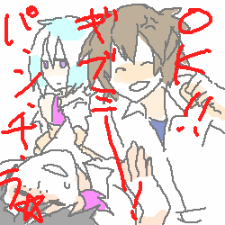 ・静に襲い掛かって保護者に殴られる図